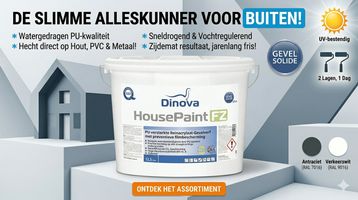 Vergeet verschillende primers en lakken. Met Dinova Housepaint FZ schilder je kozijnen (hout en PVC), de regenpijp, de gevelbetimmering en je gevels met hetzelfde blik.
